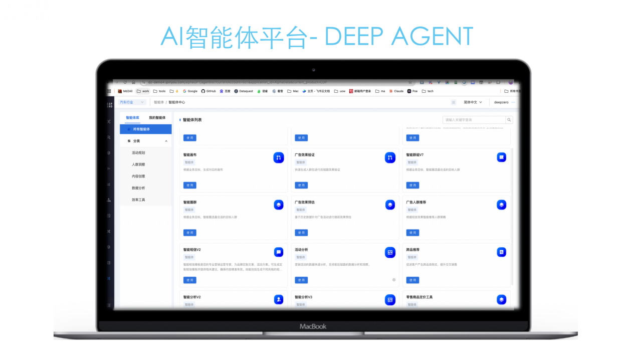 • 最后,依托深耕消费品、金融、汽车等领域十年的经验,Deep Agent 内置 300 多个行业决策模型与海量的场景化解决方案,为企业提供从数据治理到营销触达的一站式服务。